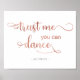 Um moderno sinal de "Confie em mim que pode dançar" para a sua rosa de ouro e recepção de casamento ou festa de moda branca! Role para baixo para ver os produtos correspondentes que você pode desfrutar.