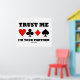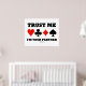Mostre o lado do jogador da ponte com este poster com os quatro naipes de cartão, juntamente com o ditado que é frequentemente ouvido na mesa da ponte: "Confie em mim sou seu parceiro".