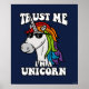"Confie em mim, sou um Unicórnio" gráfico unicórnio desenhado por Creative mostra um legal unicórnio arco-íris em óculos de sol! Isso faz um presente excelente para a família, amigos ou um presente para você mesmo! Este gráfico engraçado é um excelente adicional ao estilo de qualquer um. Criativo é um criador líder e licenciador de designs e propriedades originais e tradicionais. ©LCT Creative. Licença de bCreative.com