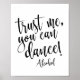 Um elegante cartaz de noiva, mostra o texto "Confie em mim, você pode dançar! Álcool" em uma letra extrovertida, a textura do pincel adiciona uma sensação espontânea e lúdica. A cor de fundo pode ser personalizada de acordo com as suas necessidades e preferências, contacte-me se tiver alguma solicitação especial.