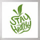 Serve de consciência para manter-se saudável o tempo todo. O texto é desenhado em forma de maçã, mostrando nutrição, batatas fritas, vitaminas contribuem para a saúde.