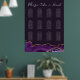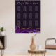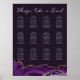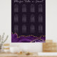 Gráfico de assentos de Mesa de casamento de agata roxa. A fonte do script é realçada com a fonte de nome de serif de leitura fácil. Fácil de ajustar para as suas necessidades de casamento. Cartões de mesa personalizados.