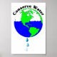 Um gráfico de terra com metade da água drenando do fundo. As palavras "Conservar água" estão por cima.