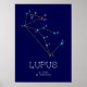 constelação do Sul, Lupus ou lobo. A cor das estrelas é quase real. Nomes de objetos de estrelas e espaço. Um presente astronômico único. Você pode transferir este design para centenas de outros produtos, basta escolher um na linha de produtos abaixo da imagem. Não se esqueça de usar o botão PERSONALIZAR para ajustar a imagem no produto, realocá-la ou adicionar algum texto a ela.