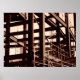 Foto monocromática Sepia de um detalhe de um edifício de armação de aço em construção.