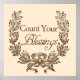 A imagem de vintage neste impressão diz "Conte suas bençãos", que é uma boa mensagem para todos se lembrarem.