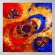 Continuum – Uma Celebração Colorida da História Negra. O movimento flui pela tela como o próprio tempo, ligando passado e presente. As formas circulares parecem eternas, representando ciclos de cultura, migração e sobrevivência. O ouro ilumina a narrativa, enquanto pinceladas vermelhas e azuis introduzem ritmo e intensidade emocional. A peça sugere que a história negra não é segmentada, mas contínua e em evolução.
