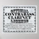 Licença Oficial Contrabass Clarinet. Há muitas atividades que envolvem diversos equipamentos, como a operação de um automóvel, avião, etc., que exigem formação e licenças especializadas. A música fazer é algo que geralmente requer treinamento: lições, prática e ensaios. Não deveria ser exigido aos futuros músicos que recebessem licença para operar o equipamento, ou seja, seu instrumento musical?