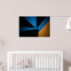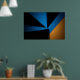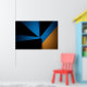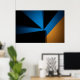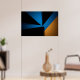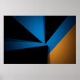 Formas triangulares em azul, preto e laranja se encontram em uma composição ousada. Luz e sombra criam profundidade nesta arte geométrica minimalista. Ideal para quem busca modernidade e contraste em decorações contemporâneas. Uma peça que equilibra energia e sobriedade com maestria.