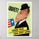 Este poster WW2 vintage mostra a mão do tio Sam, cobrindo a boca de um homem de chapéu. Diz: "Quieto! Conversações Perdidas Podem Custar Vidas".