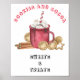 Biscoitos de gengibre de aquarela e xícara de cacau com marshmallow. Festa de Natal de chá de fraldas de convite.