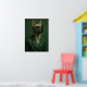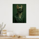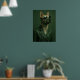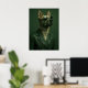 This unique, detailed piece blends animal portraiture with high fashion. The dog's piercing gaze and the vibrant texture of the jacket create a commanding, sophisticated atmosphere. The restricted color palette of deep, forest green gives this poster a premium, luxurious feel.