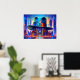 Cool NYC Art New York City in my Hat - The artwork for this poster is part of a set with the theme of New York City and the famous fedora that business men and singers used to commonly wear. It is vibrant and colorful with the hum of the city almost coming from the poster. The matching set all have, as this one does - the New York City buildings and skyscrapers with a surprising way to see them as the city they are part of. This artwork was created from my photographs of the New York City Skyline at night and buildings in NYC that I have photographed added to my ideas, style and my other artwork as the style for it, then mixed into generative content and this amazing artwork became real - by CricketDiane 2025 and Cricket House Studios Art and Design.