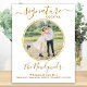Bebidas Personalizadas ! Caligrafia simples e elegante, este letreiro de bebidas personalizadas apresenta um coquetel 'os Recém-Casados', personalizado com sua bebida de escolha. Personalize este elegante letreiro de casamento com sua foto de noivado favorita ou foto do casal, nome e bebida personalizada! Você também pode personalizar as fotos das bebidas personalizadas com as fotos de seus animais de estimação favoritos para um casamento de animais! Personalize com fotos de cães ou gatos. DIREITOS AUTORAIS © 2020 Judy Burrows, Black Dog Art - Todos os Direitos Reservados. Cartaz de Bar de Coquetel Personalizado de Casamento em Dourado