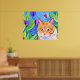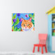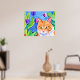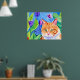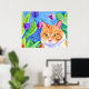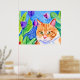 Poster Cor de Água Coca Laranja Gato e Flores Bonito