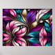 Poster Cor-de-rosa Floral e folhas Vidro manchado
