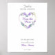 Poster Coração de Aquarela Floral com Folhas em Roxo