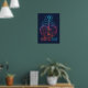 Este poster celebra o amor da música e do violão. Ele tem uma ilustração simplista de um violão eletrônico rodeado por um grande coração de neon e notas musicais.