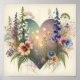 Essa trabalho de arte cativante apresenta uma sinfonia de flores arranjada em forma cardíaca, com um pano de fundo mesmerizante que transita de uma paleta macia e cremosa para uma cena celestial sonhadora. O próprio coração é composto por uma coleção diversificada de flora, incluindo pontas torrenciais de delfinírios, delicado hibisco, e uma mistura de flores silvestres e samambaias. Esta peça exude um senso de beleza tranquila e seria uma adição perfeita a qualquer sala que necessitasse de um toque da elegância da natureza.