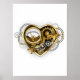 Cardíaco mecânico, volumétrico e steampunk com manômetros de pressão, de aço e de ouro sobre fundo branco. Estilo Steampunk.