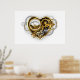 Cardíaco mecânico, volumétrico e steampunk com manômetros de pressão, de aço e de ouro sobre fundo branco. Estilo Steampunk.