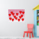 Corações vermelhos brilhantes pendurados em cordas num fundo rosa e branco - perfeito como um Poster Dia de os namorados!