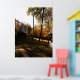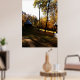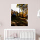 Um poster perfeito para o outono. Vejam as cores da queda e a luz do sol brilhando através das árvores nesta paisagem rústica do campo.