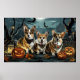 Desencadeie o espírito assustador com este design sinistro de Halloween, apresentando uma matilha de cães sob um céu escuro e iluminado pela lua, cercado por morcegos voando e abóboras brilhantes. Perfeito para quem ama um toque de diversão assustadora com seus amigos peludos!