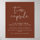 Esta placa de cápsula de tempo e modelo de sinal imprimível apresenta uma fonte manuscrita escura e um design moderno minimalista com uma combinação de cor branca e ferrugem. Este sinal é perfeito para o seu chá contemporâneo, industrial, boêmico ou neutro em termos de gênero.