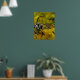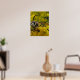 Este poster apresenta Dolichovespula maculata, um inseto norte-americano chamado de corneta careca (ou corneta de cara branca ou coroa branca). Seus conhecidos traços incluem seus ninhos de papel pendurados e o hábito das fêmeas de defendê-los com picadas repetidas. Pertence ao gênero das vespas chamadas coletes amarelas. As marcações preto e branco marcantes se destacam contra as lindas flores amarelas douradas. De perto, esse inseto assustador parece ter chegado de outro planeta!