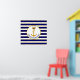 Âncora e coroa náutica dourada da família em Poster listrado azul e branco.