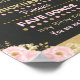 Este design apresenta uma coroa real cintilante em brilho dourado falso decorada com peônias rosa água-marinha e confetes em um fundo de lousa escura.