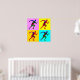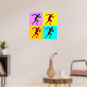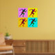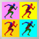 Silhuetas multicoloridas de corredores sobre o fundo de quadrados multicoloridos