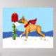Este "Fawn Boxer" enrola na neve para levar suas Cartões de natal para a caixa de correio vestindo seu lenço vermelho de malha. Trabalho de arte de Natal de Danes-R-Us trará um sorriso ao rosto de qualquer amante de cachorro nesta temporada.