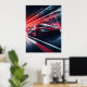 Tema: Inspirado pelos jogos de corrida. Imagem Central: Um carro em velocidade, com linhas dinâmicas de movimento. Fundo: Race track com público e pé. Texto: "Race to the Finish". Cores: combinação de vermelho, preto e branco para alto contraste.