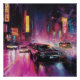 Esta poster cativante mostra luzes de neon audaciosas iluminando uma corrida noturna de rua em uma vibrante paisagem urbana. Perfeito para entusiastas de corridas e amantes da arte urbana.
