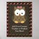 Coruja-bebê adorável num esquema de cor rosa, verde e castanho. Perfeito para a garotinha que ama animais e desenhos bonitos. Esta ave feminina tem pestanas bonito e um arco rosa no topo da cabeça. Personalize com seu professor, escola, aluno, ou nome de criança ou outro texto. Design Copyright © CuteComfy.