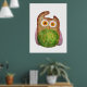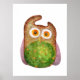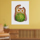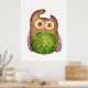 Poster de ilustração engraçado de coruja aquosa para cama e café da manhã, hospedeiro e outros negócios.