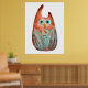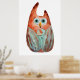 Poster Coruja verde-laranja-branca