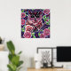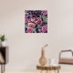 Poster Coruja Whimsical na ramificação Flor Azul Rosa