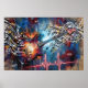 Vibrant electric guitar art surrounded by dancing musical notes! Abstract expressionist style with graffiti and colorful splatters. Perfect for music posters, album covers, and studio decor. Pure rock energy and urban rhythm that transforms any space with passion!