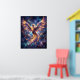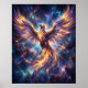 A magnificent cosmic phoenix rises in a burst of radiant energy, its wings formed from blazing nebula flames and flowing celestial fire. Glowing feathers of gold, violet, and deep blue create a powerful sense of motion and rebirth. Surrounded by an explosion of light and cosmic energy, the scene feels epic and transformative. This striking artwork symbolizes renewal, strength, and immortality, making it a perfect centerpiece for bold interiors, inspirational spaces, and collectors of high-impact fantasy art.