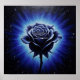 Este pôster de fantasia apresenta uma impressionante rosa azul escura brilhando com luz azul radiante, contra um fundo estelar cósmico, simbolizando mistério, elegância e a beleza infinita do universo. Concluído como uma impressão de arte em pintura a óleo.