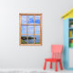 O oceano tranquilo parece seda azul nesta vista do mar vislumbrada através de uma janela. A poster fotográfica mostra uma cena costeira na Escócia, onde uma terra preta acaba no mar. No primeiro plano você pode ver um penhasco coberto, com o céu azul de verão aplicado com nuvens fofinhas de branco. Uma cena da costa tranquila para adicionar um toque pacífico a uma sala.