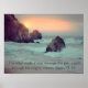 Poster com a foto de uma bela terra oceânica rochosa, com ondas batendo contra a areia, e o pôr do sol atrás das grandes pedras. O verso Bíblia Isaiah 43:16 "Aquele que atravessou o mar, um caminho através das águas poderosas" é exibido, mas totalmente personalizável, e pode ser mudado para seu verso ou citação favoritos.