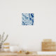 Poster costa praia ondas náuticas aquarelas espirais azui