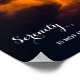 Esta poster tem uma imagem de um céu noturno negro e laranja com nuvens e raios, e uma citação inspiradora de uma pessoa desconhecida: Serenidade não é livre da tempestade, mas paz no meio da tempestade.