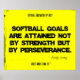 Este poster de softball motivacional apresenta uma citação de softball do autor e designer Felicity Luckey para a motivação de treinador, jogador e equipe. A imagem é de um "rasgado e rasgado" para o tecido de sucesso da malhação com a inscrição "thread solto". Há um total de 12 citações de softball nesta série de Excelentes Minds Think Ajustado™. Os posters de softball estão disponíveis em cores brilhantes e arrojadas, azul-denim escuro e colagens de várias aspas. A citação motivacional neste poster de softball diz: "As metas de softball são alcançadas não pela força, mas pela perseverança." ~ Felicity Luckey