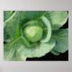 Uma usina de repolho está madura e pronta para ser colhida. São lindas folhas azuis/verdes sentadas sobre um fundo preto. O original é uma pintura em miniatura de óleo por Kathie Miller