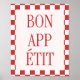 Impressão de Poster do padrão retro verificado 'Bon Appétit'. Adicione um toque retroativo à sua cozinha ou ao espaço de jantar com este impressão de arte na moda 'Bon Appétit'. Se tiver alguma dúvida, entre em contato com o designer.